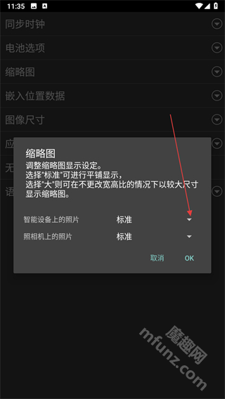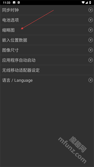 2、找到并点击缩略图选项,弹出设置窗口。