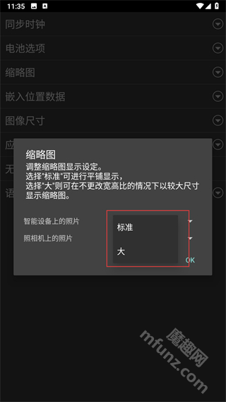 4、选择大或标准尺寸,点击OK按钮。