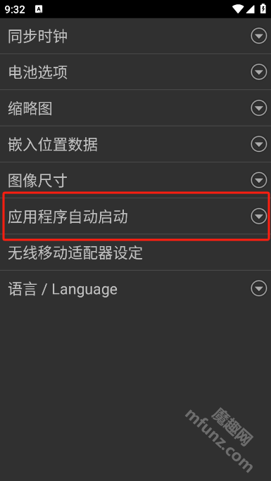 2、点击应用程序自动启动功能。