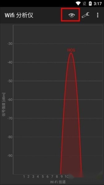 4、独特的wifi信道图表,可以清楚的查看附近WiFi信道频率范围。