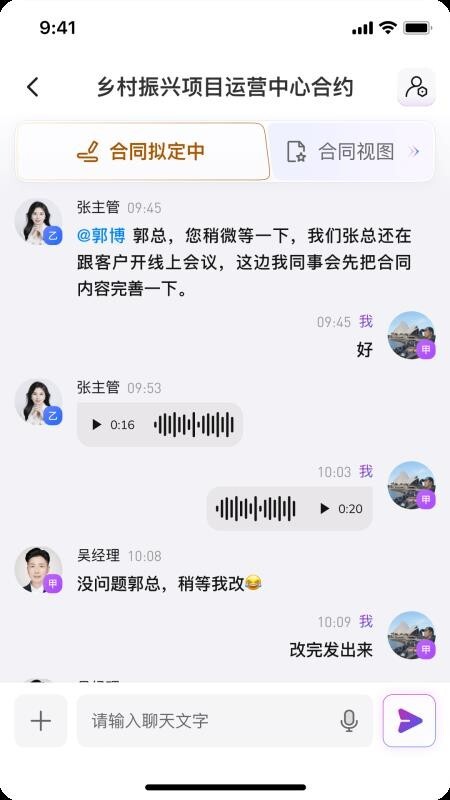 3、全功能通讯模块支持文字、图片和语音等多种交互方式,消息提醒和未读标记,确保商业沟通及时高效不遗漏重要信息