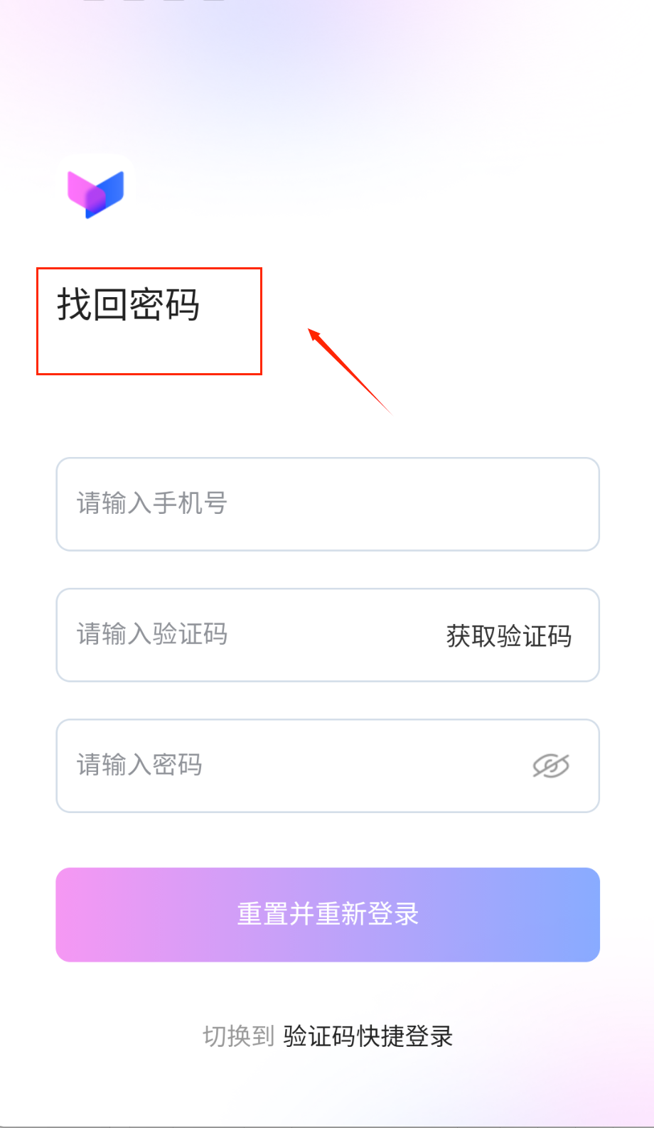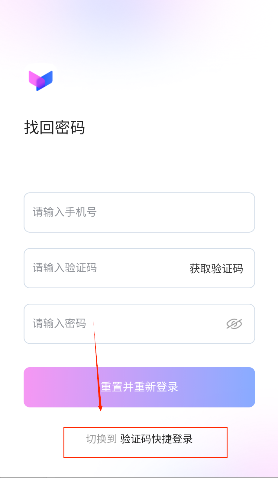 4、设置新密码后,点击“重置并重新登录”按钮,系统会自动跳转回登录界面。此时,您既可以使用新密码登录,也可以直接选择验证码登录,两种方式都能顺利访问账户。