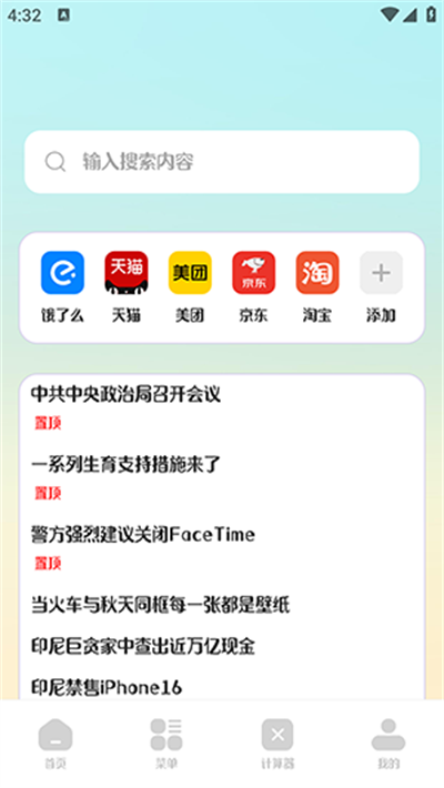 1. 首页设计简约,默认呈现空白界面,支持添加个人常用网址。