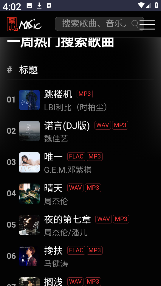 黑山音乐,堪称一款超好用的音乐资源平台。它汇聚了海量动听的歌曲资源,大量高品质音乐资源能够免费下载至本地,如此一来,即便没有网络,也能尽情听歌。该平台充分满足大家个性化的听歌需求,诚挚欢迎大家前来体验!