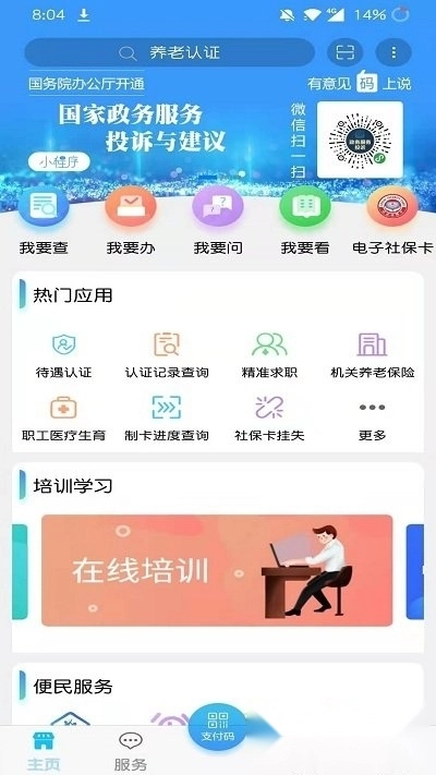 青海人社通主要包括了社保查询、就业服务、社保卡服务、就业服务、政务公开、智能咨询服务和刷脸认证等人社全方位服务。