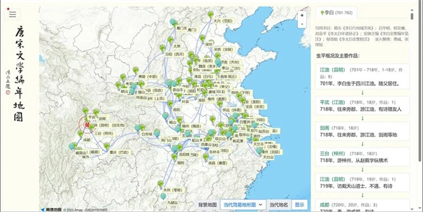 2、选定一位诗人后,即可分年龄段查看他的活动轨迹