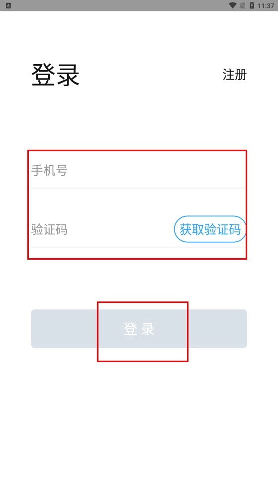 2、在登录页面输入手机号,点击【获取验证码-功能按钮】获取验证码,输入验证码后点击【登录-功能按钮】完成登录。