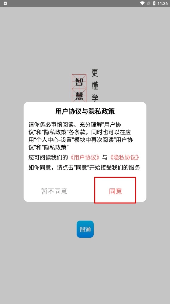 1、点击【同意-功能按钮】,以同意用户协议和隐私政策。