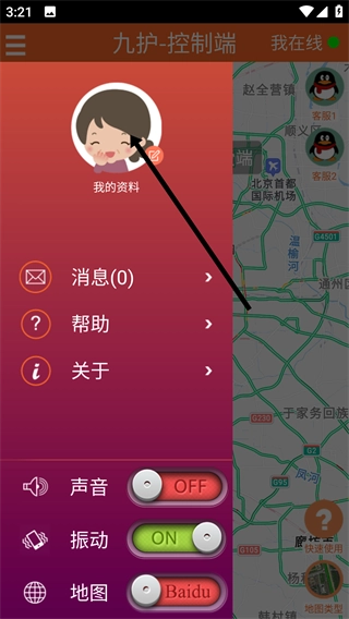 1、在九护-控制端的主界面,点击左上角的菜单按钮,展开侧边栏。