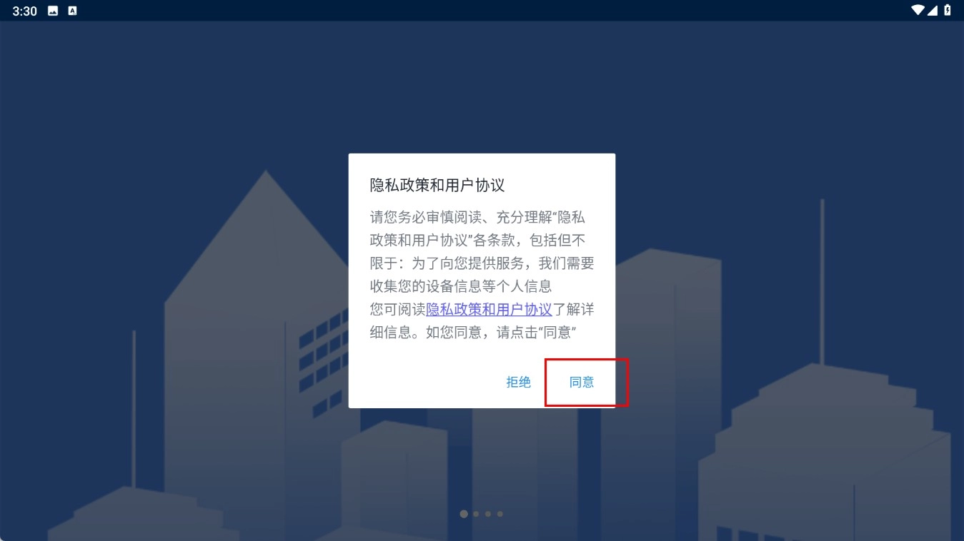 1、仔细阅读【隐私政策和用户协议】的内容,确认无误后点击【同意】按钮,即可进入应用的使用流程。