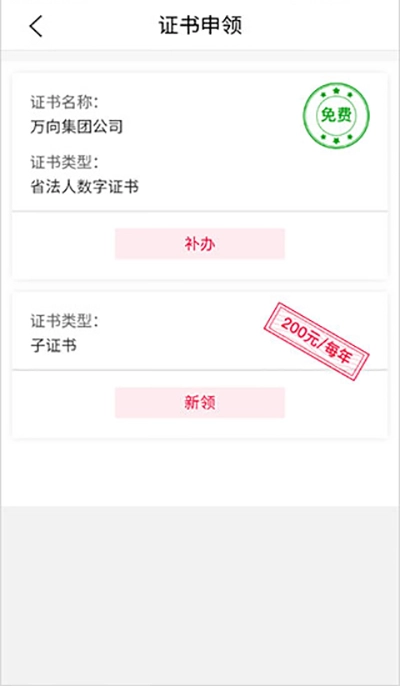 4、进入后,可点击补办或者新领;
