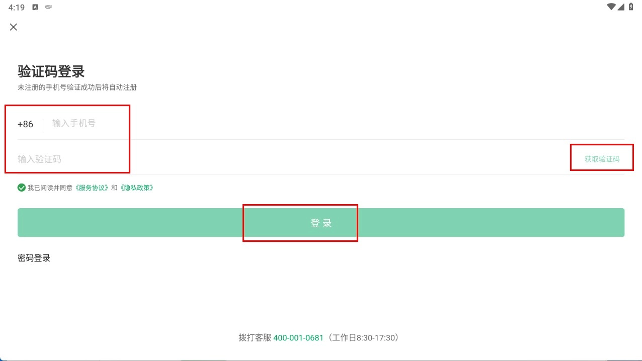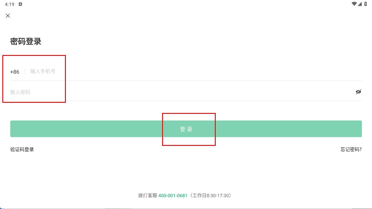 3、选择密码登录,输入手机号和密码,点击【登录】按钮,完成账号登录。