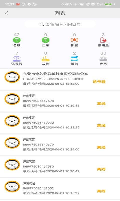 3、在搜索框输入【场所名称/IMEI号-关键词】,查找目标设备。