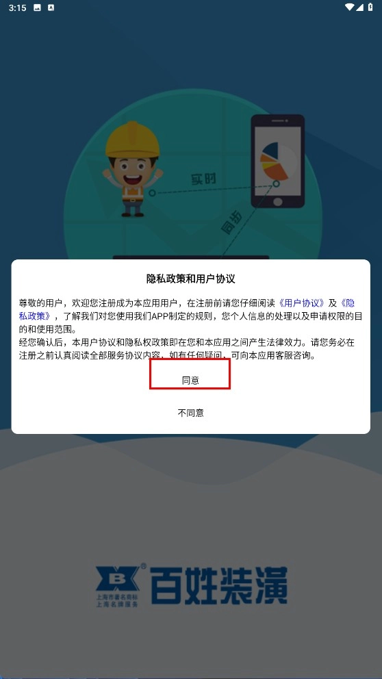 1、点击【同意】按钮,同意隐私政策与用户协议后,即可进入。