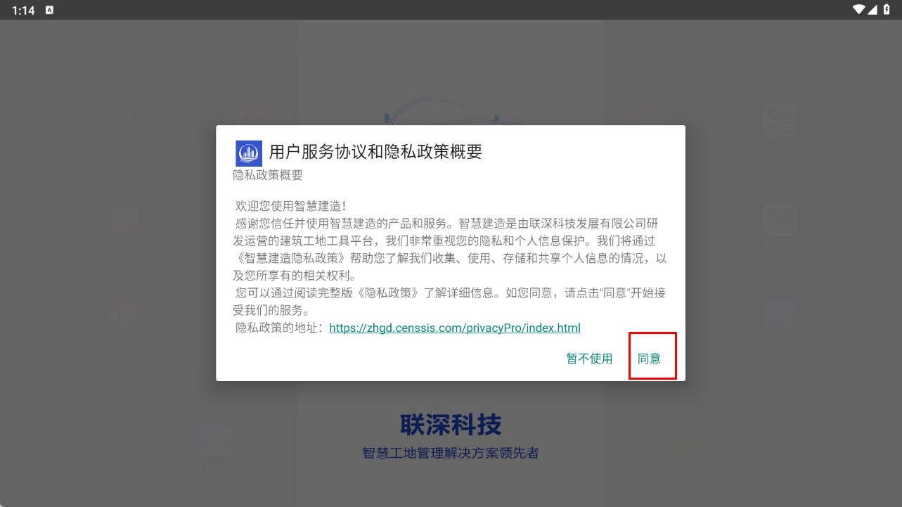 1、在用户服务协议和隐私政策概要界面,点击【同意】,进入登录环节。