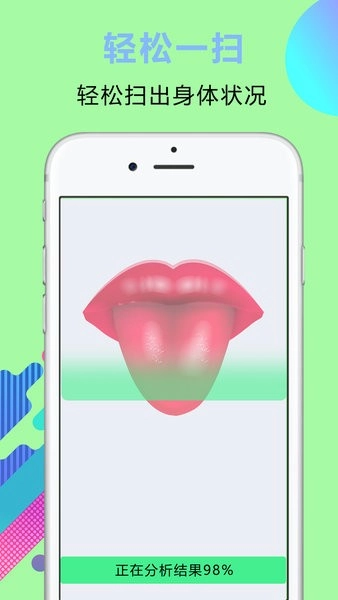 1、“智能舌诊”的核心功能为舌象拍照识别。用户仅需打开应用,拍摄自身舌头,系统即可自动识别并分析舌头的颜色、形态等特征。