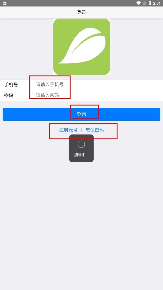1、在手机号输入框中填入手机号,密码输入框中填入密码,即可完成登录;若尚未注册账号,可点击【注册账号】按钮;若忘记密码,则可点击【忘记密码】按钮。