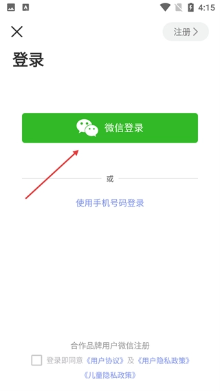 2、进入登录页后,提供【微信登录】和【使用手机号码登录】两种方式,选择对应方式,勾选协议后即可完成登录流程。