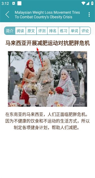 3、切换到马来西亚减肥运动文章详情界面,阅读关于肥胖危机及健身计划的内容,获取健康资讯。