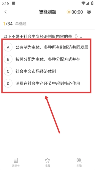 4、在刷题页面即可开始答题,进行智能刷题练习。