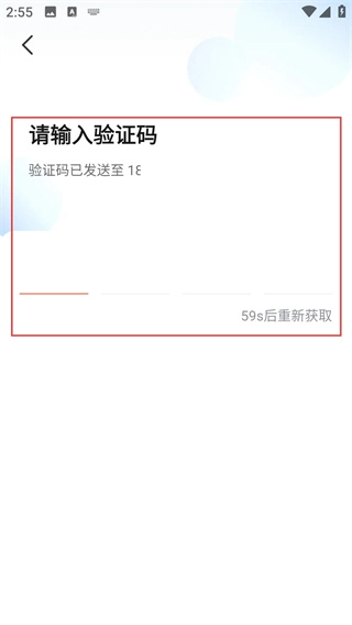 3、进入验证码输入页面,填写收到的短信验证码,完成账号登录/注册,进入应用主界面。