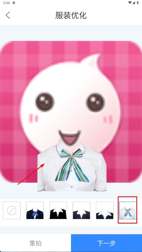 4、在服装优化界面,挑选合适的服装样式,点击【下一步】,继续证件照制作流程。