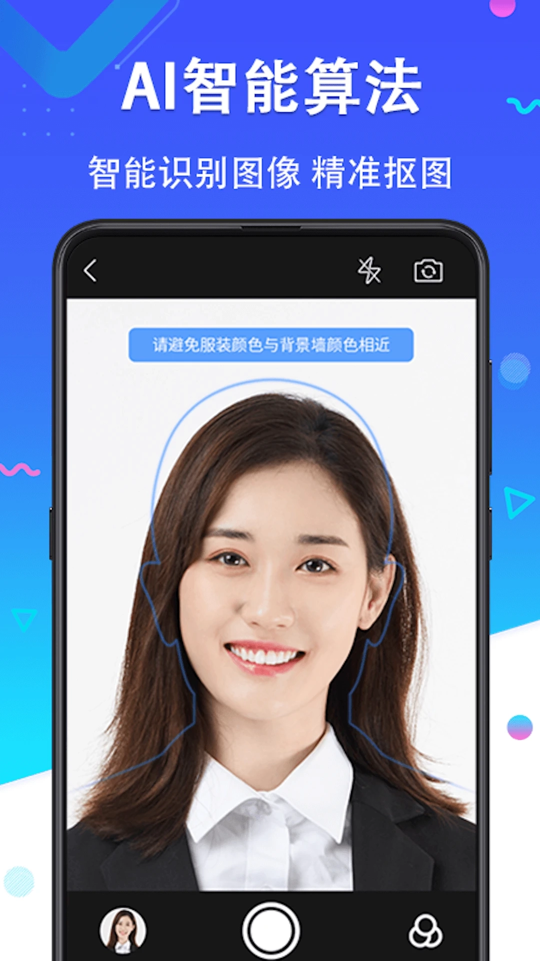 3、拍摄环境检测功能可确保照片光线均匀、背景简洁,提高证件照的质量。