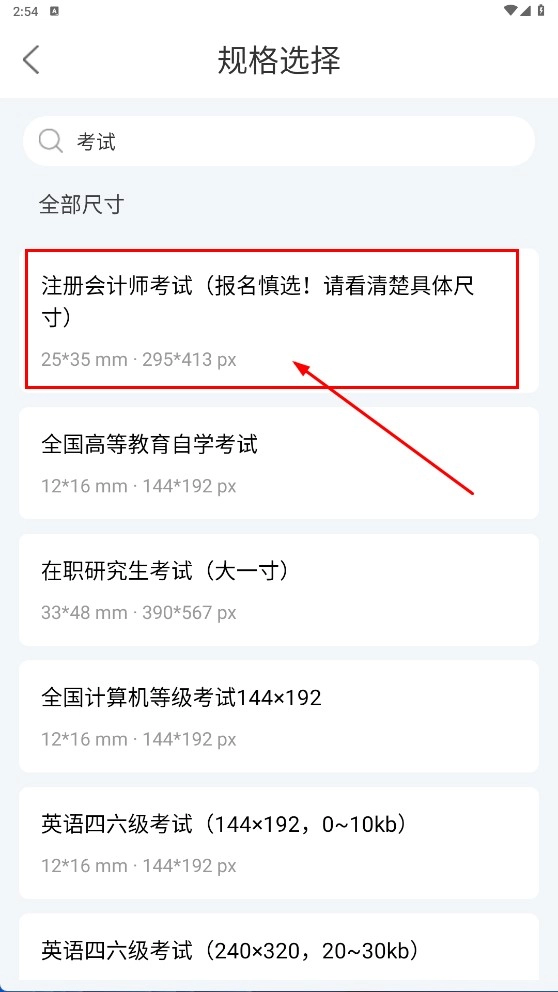2、选择对应考试证件照规格,如【注册会计师考试】,进入拍摄环节。