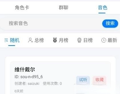 7.切换到音色选项可以收藏或试听喜欢的声音。