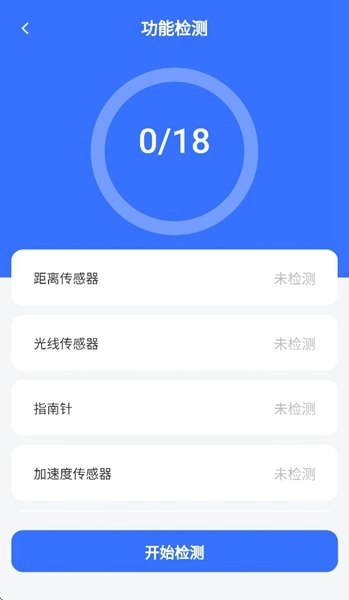 3、点击“开始检测”按钮后,应用就会自动启动对手机各项功能的检测流程。