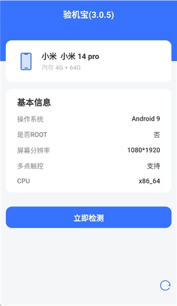 安装并打开验机宝,进入后点击立即检测