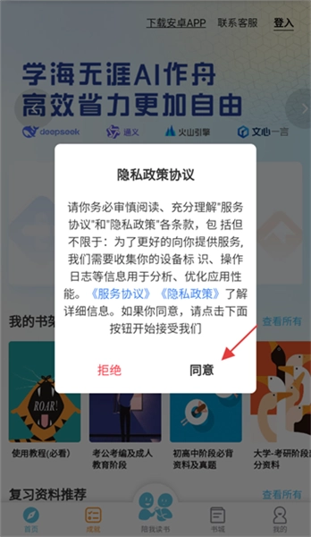 2、阅读隐私政策后点【同意】继续操作。
