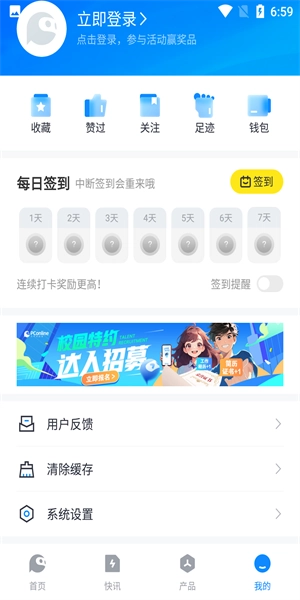 4、点击我的可以每天签到,签到的天数越多获得的奖励就更高,快来试试吧。