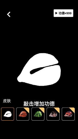 2、点击电子木鱼,进入敲木鱼环节,点击屏幕中间白色木鱼可以发出敲木鱼的声音和功德+1的图标。