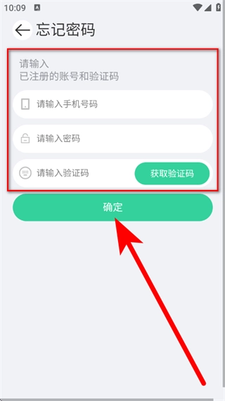 4、在忘记密码页面,输入手机号码,点击获取验证码并填写后,点击确定,完成密码重置。