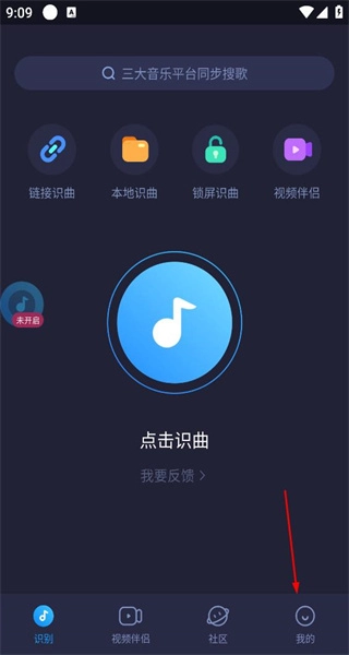 2、我的页面顶部有点击登录提示,登录可永久保存识曲历史,页面还有多项功能。