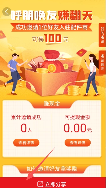 2、分享推广邀请其他新用户加入,赚取奖励金用以提现。