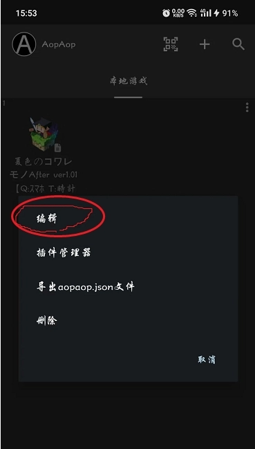 4.确定成功将翻译文件复制或者移动到文件夹后,回到AOPAOP模拟器。长按你刚才添加的游戏。选择第一项编辑。
