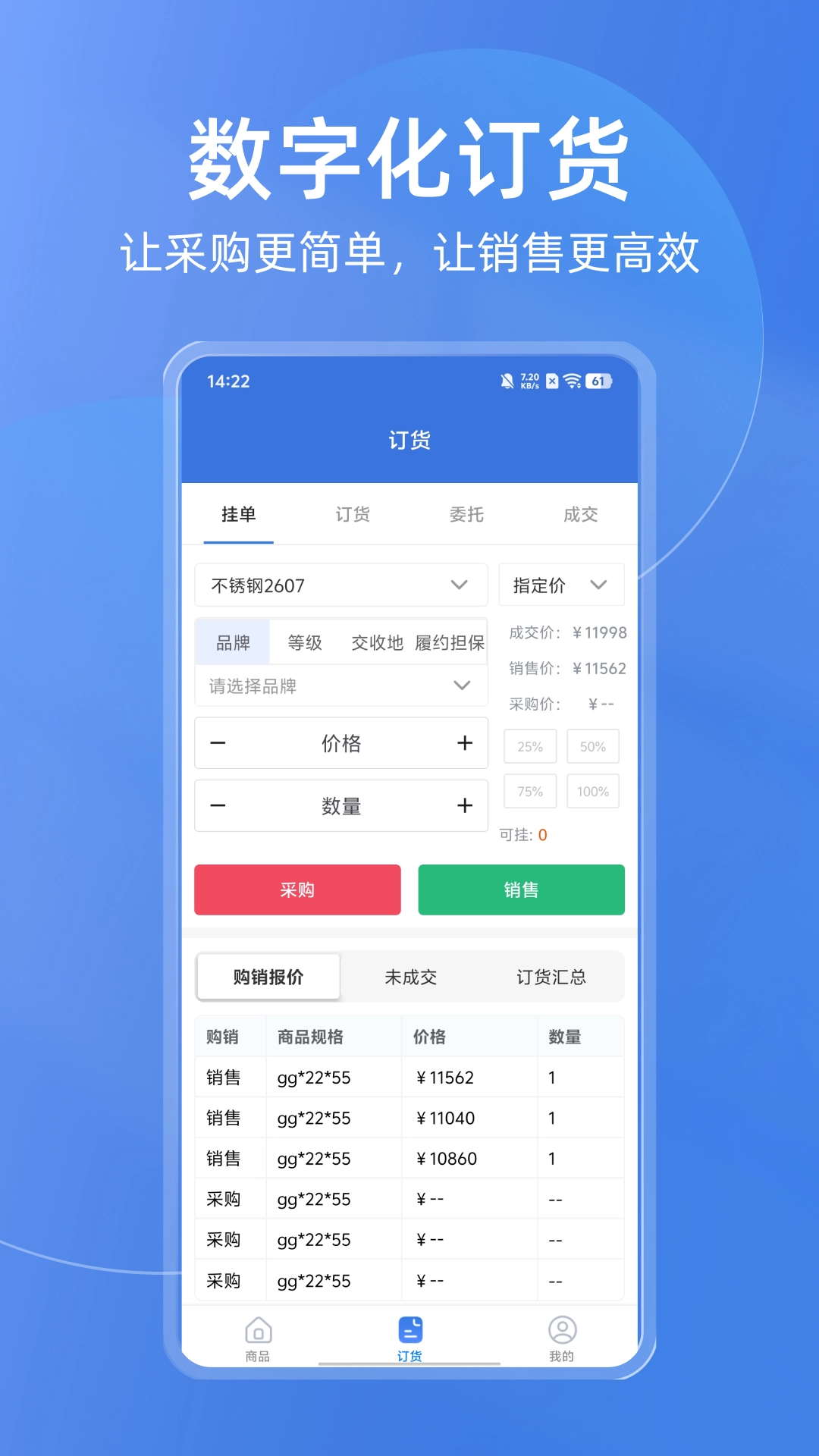 买钢乐订购是一款在不锈钢产业深耕多年的数字化交易手机应用,它为供需双方搭建起高效对接的桥梁,整合了海量优质的不锈钢现货资源,覆盖多种规格型号。无论何时何地,用户都能在这里完成采购与销售业务,并获得精准的匹配服务,助力不锈钢行业从业者实现高效经营。