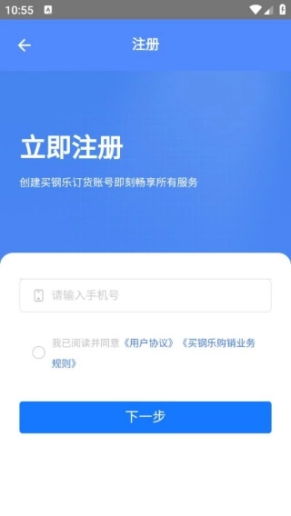 2、输入手机号,完成输入后,勾选同意用户协议,就可以直接点击下一步。