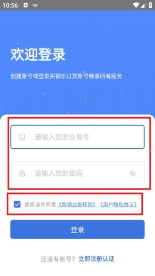 4、返回登录界面,输入交易号,密码,勾选同意协议,点击登录即可。