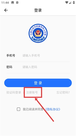 2、在登录界面点击【注册账号】选项,切换至注册页面,准备填写注册所需的各类信息。