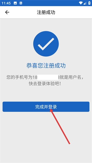 4、填写完注册信息后点击【立即注册】,注册成功后点【完成并登录】进入系统使用服务。