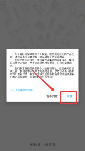 1、安装完成后进入,需在用户协议和隐私政策界面点击同意,接受相关条款后才能进入应用。