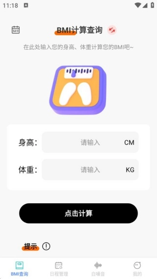 1. 用户只需输入身高与体重,点击计算,就能得出BMI值。与此同时,系统会对未满18岁、运动员、处于怀孕或哺乳期等不适合的人群作出提示。