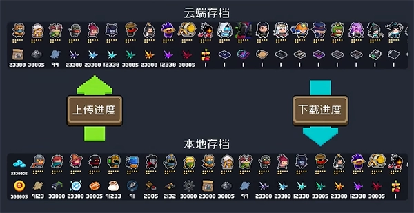 6、如果需要从云端存档,点击“进度”即可从云端游戏存档到本地。成功后,云端和本地的存档会保持一致。此时,“上传进度”和“进度”会消失。