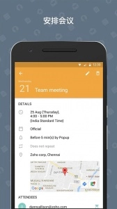Zoho手机邮箱里了日历,可安排活动,并收到活动提醒。使用集成的日历更好地组织您的一天。安排约会,查看/编辑活动详细信息以及整洁的地图叠加,并获得即将到来的会议的提醒;无需离开您的电子邮件应用程序。
