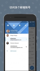 5、支持多账号 – 添加并在您不同的Zoho邮件账号之间切换。或者通过带有推送通知的收件箱统一地在一处查看所有。