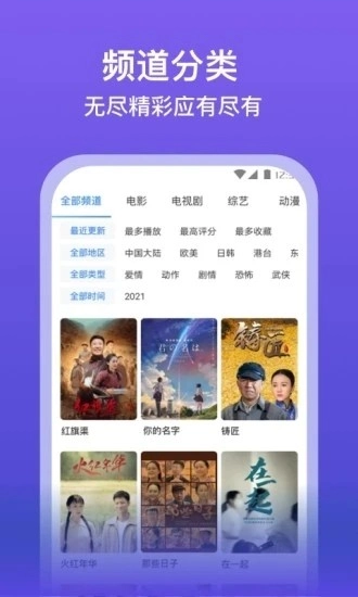2、根据影视类型、地区、年份等分类,浏览并选择感兴趣的影视作品。
