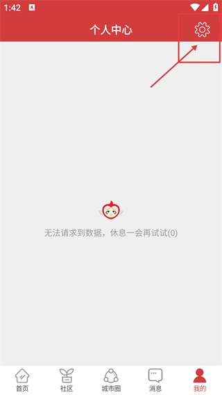 2、进入【个人中心】页面后,点击右上角的【设置】图标,即可进入应用的设置界面,开展功能配置操作。